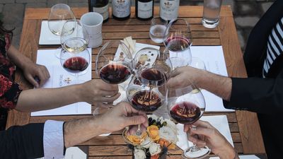• The tasting room is a table outside overlooking the vineyard